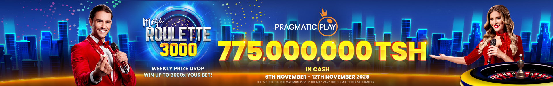 The Mega Roulette 3000 Prize Drop runs from 6th November 2025 at 12:01 until 13th November 2025 at 01:59 CET (the “Promotional Term”). This is a network promotion operated by Pragmatic Play, and the prize pool is shared across multiple operators.
